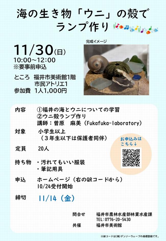 「海の生き物「ウニ」の殻でランプ作り」を開催します!