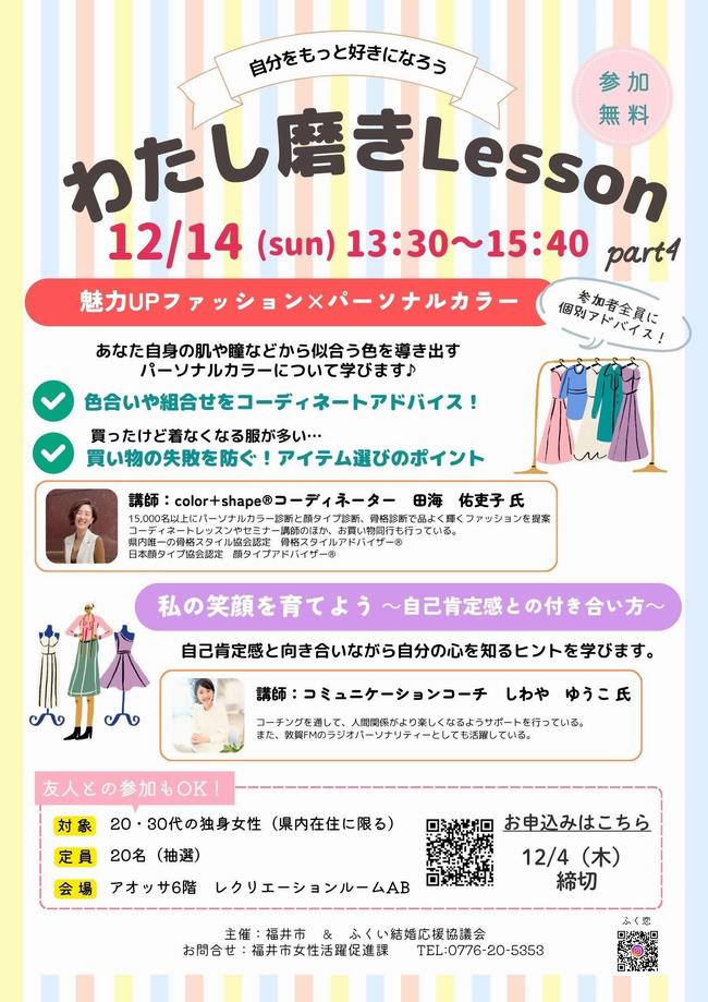 【R7/12/14】わたし磨きLesson「魅力UPファッション×パーソナルカラー」を開催します
