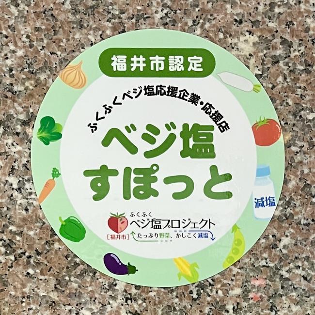 この「減塩」と「プラス1皿の野菜」に取り組み、推進していただける事業所(企業や飲食店、量販店等)をふくふくベジ塩応援企業・応援店 「ベジ塩すぽっと」として募集します。皆様も「ベジ塩すぽっと」に応募して、福井市と一緒に健康なまち「ふくい」を盛り上げましょう!