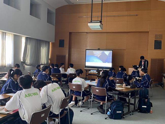 市内の中学校より依頼があり、校外学習として中学1年生に研修を行いました。