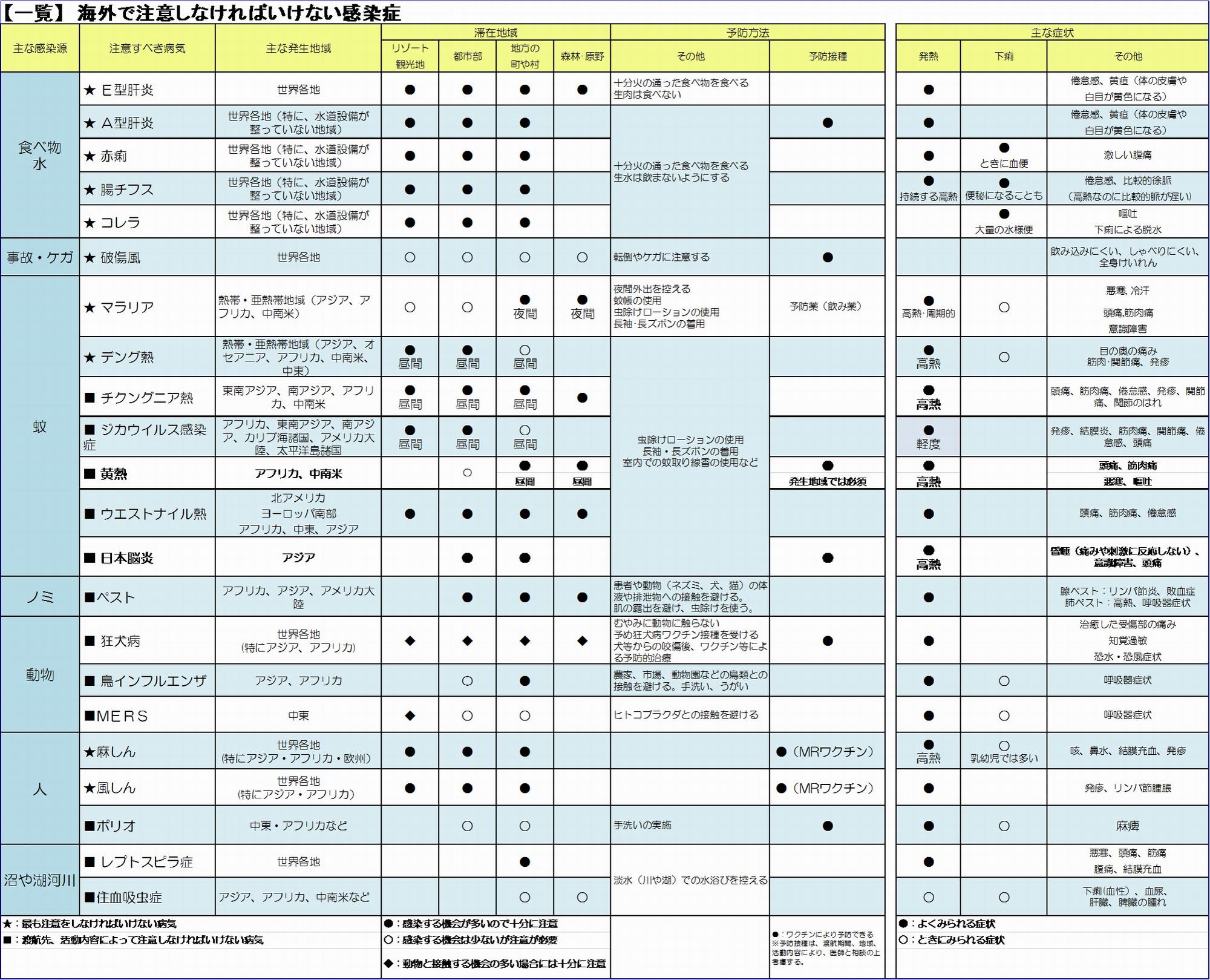 海外で注意しなければいけない感染症一覧