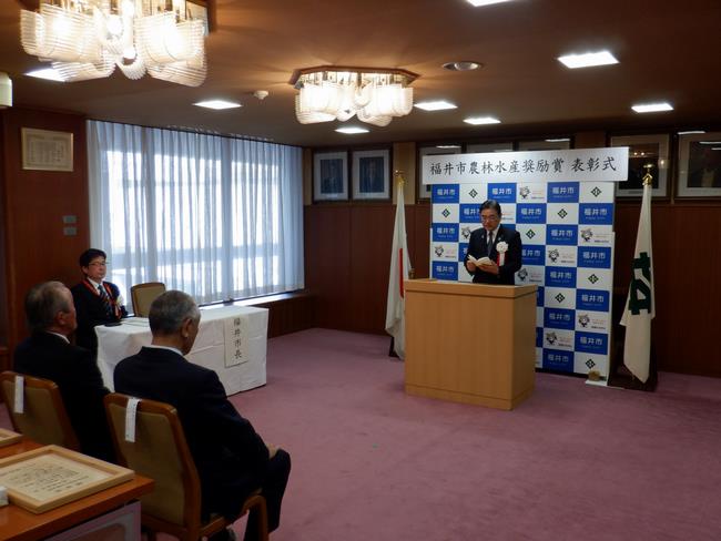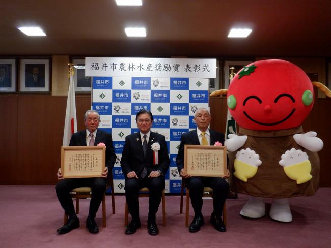 市では、農林水産業発展のため優れた取り組みを行い、意欲をもって創意工夫をこらした活動を行っている農林漁家団体及び農林漁業者を顕彰する「福井市農林水産奨励賞」を設けています。